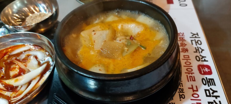 사이드메뉴로 물냉과 꽃게된장찌개를 주문했습니다