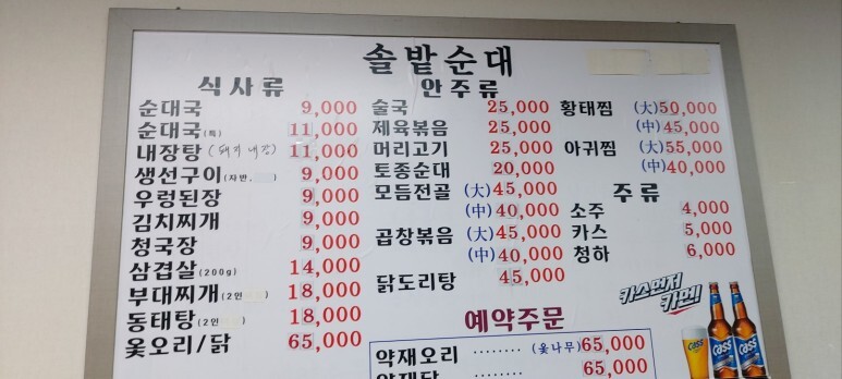 주문은 순대국(특) 2개랑 소주 한 병시지만
