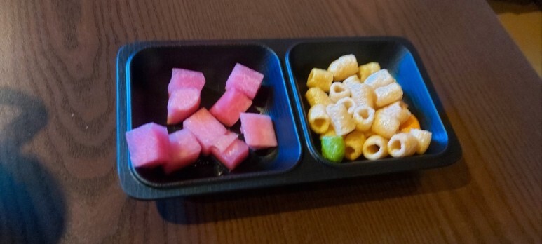 사이드에는 탕, 주먹밥, 튀김, 마른안주, 과일등이 있어서