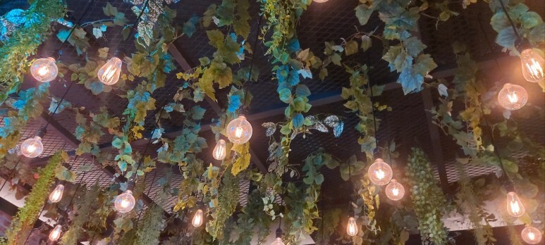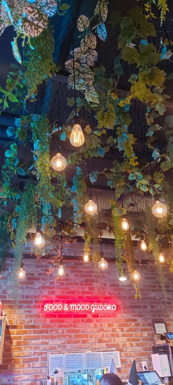 천장에는 조명과 식물장식이 되어있어서