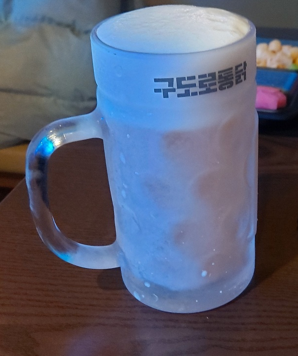 통닭에는 당연히 맥주니까 살얼음 맥주도 하나 시키고