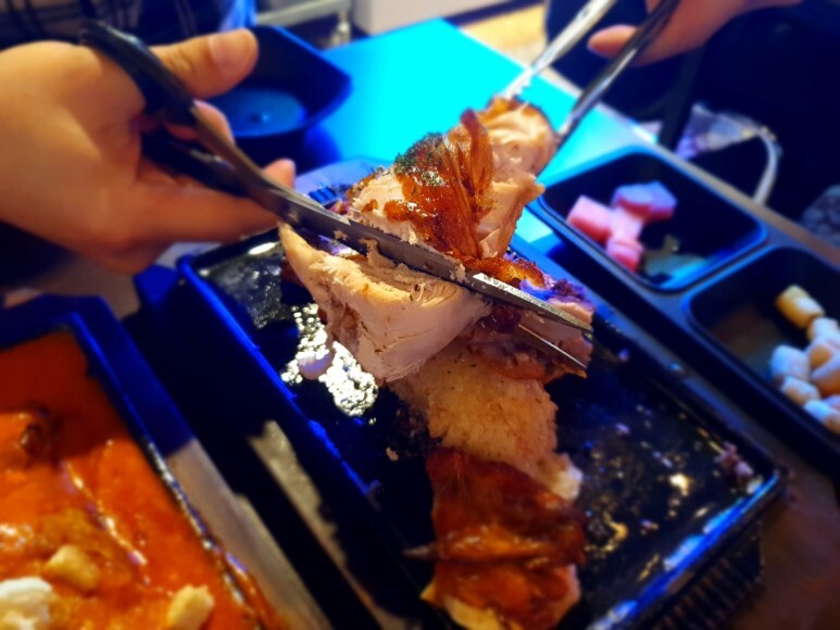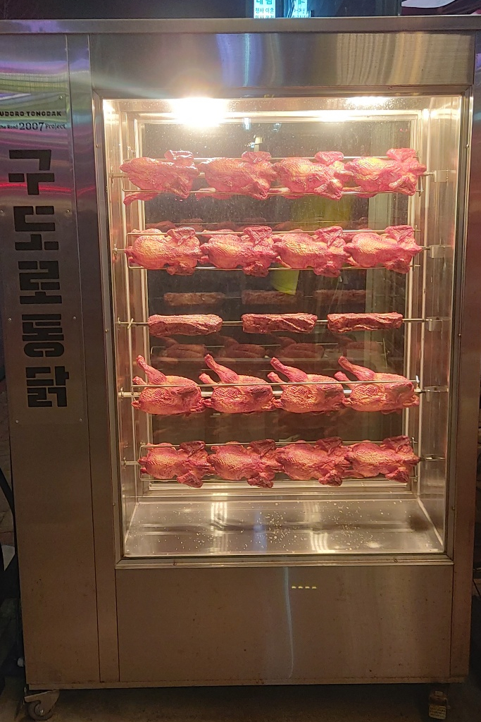 매장 입구에는 통닭과 통삼겹이 빙글빙글 돌고있습니다.