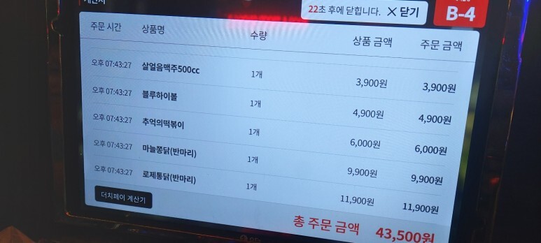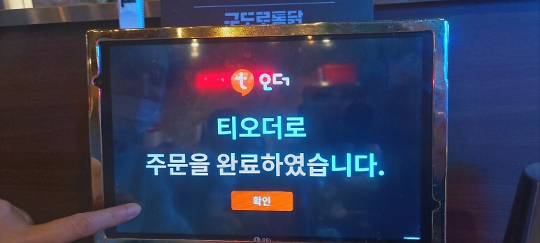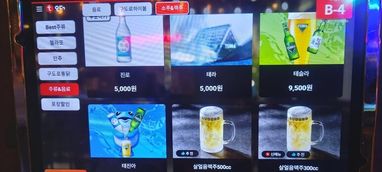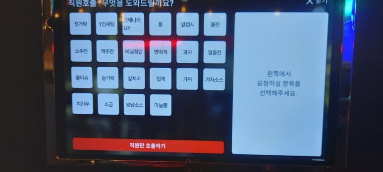 태블릿 형태의 메뉴판에서 메뉴를 고르신 후