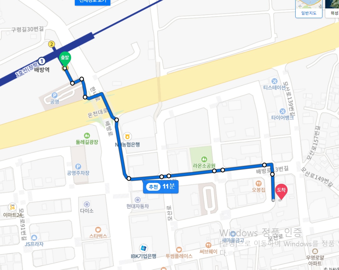 배방역 1번출구에서 10~15분 거리에 있습니다
