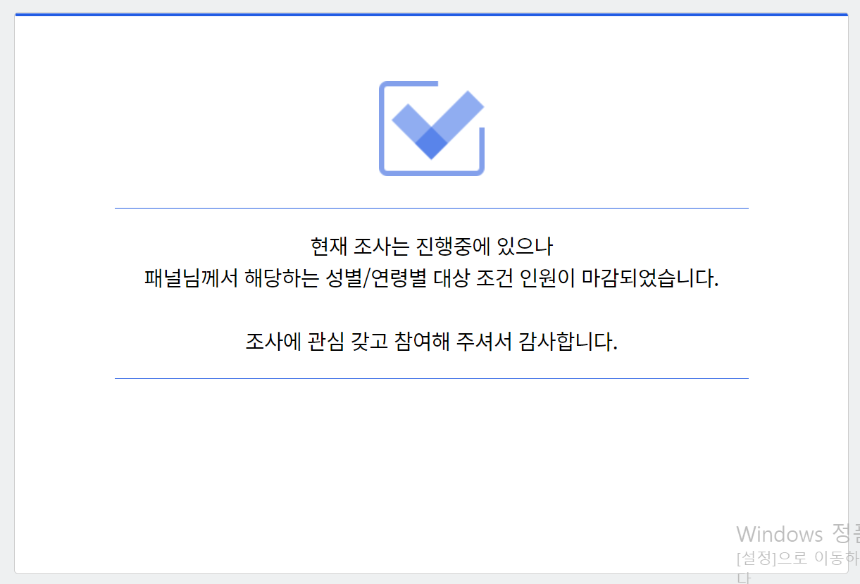 설문참여가 늦어서 설문이 종료되거나
