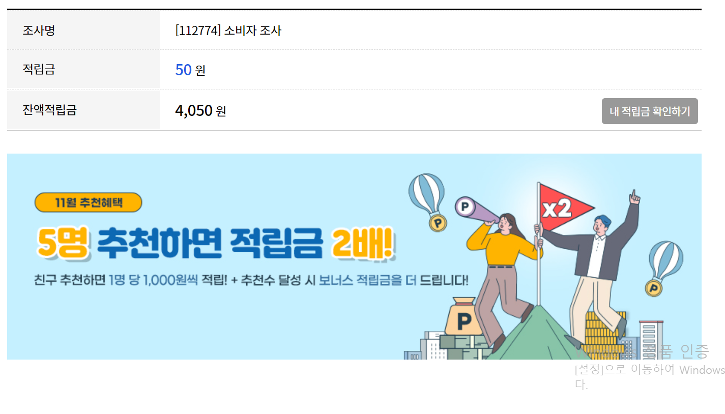 설문조사 보수는 50원부터시작하며