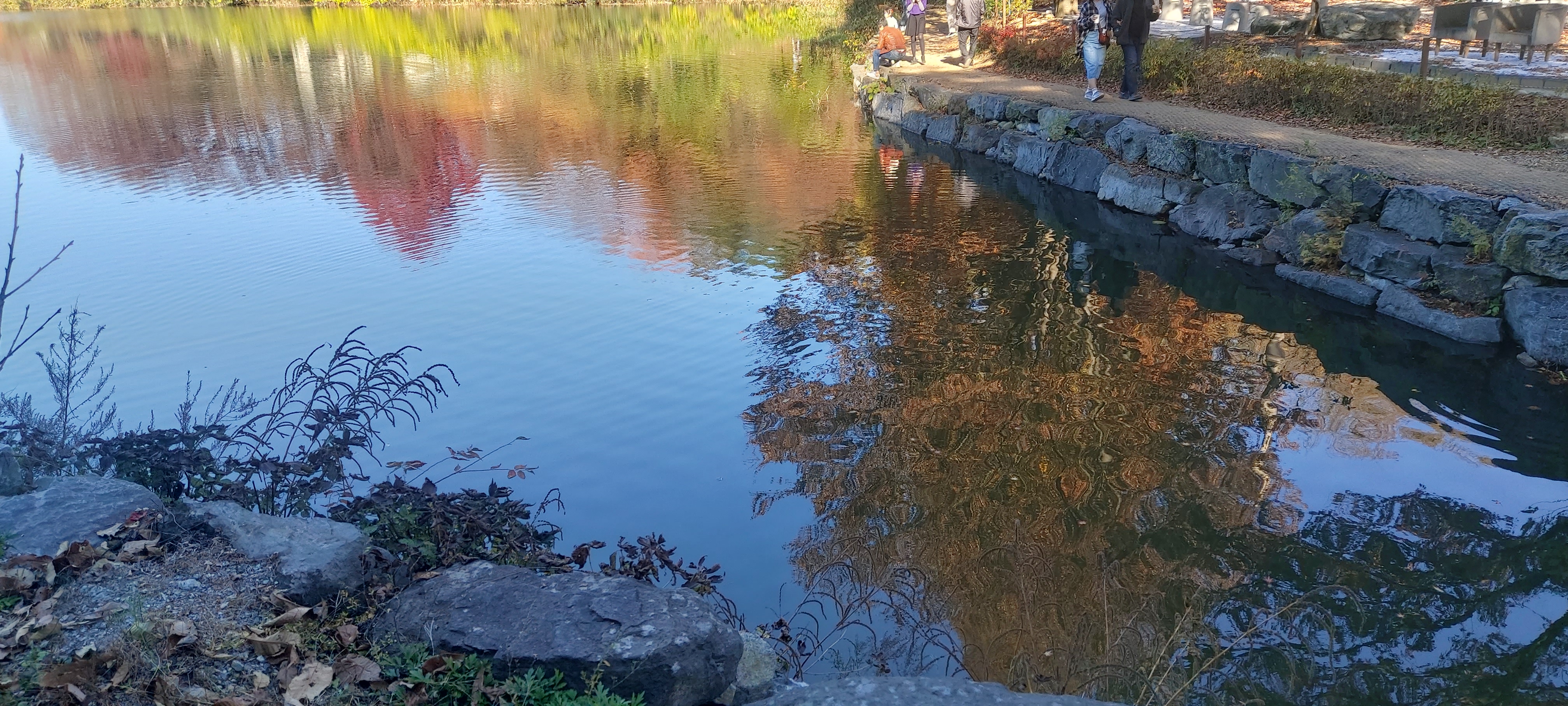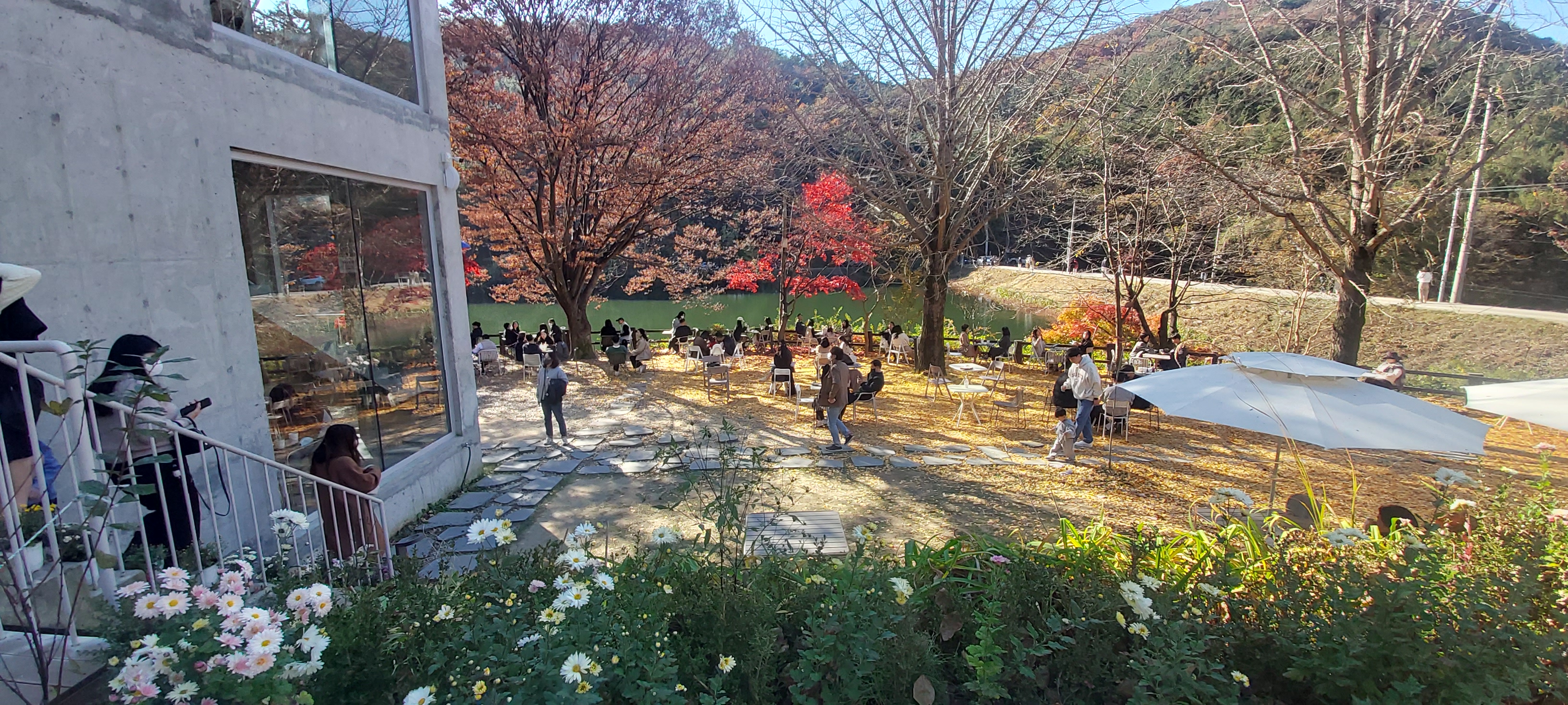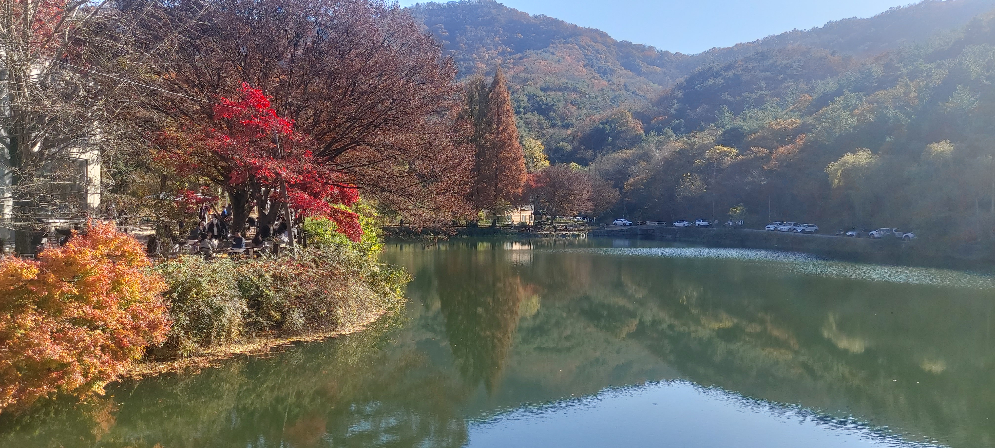 그 주변으로 단풍나무가 붉게 물들어있고