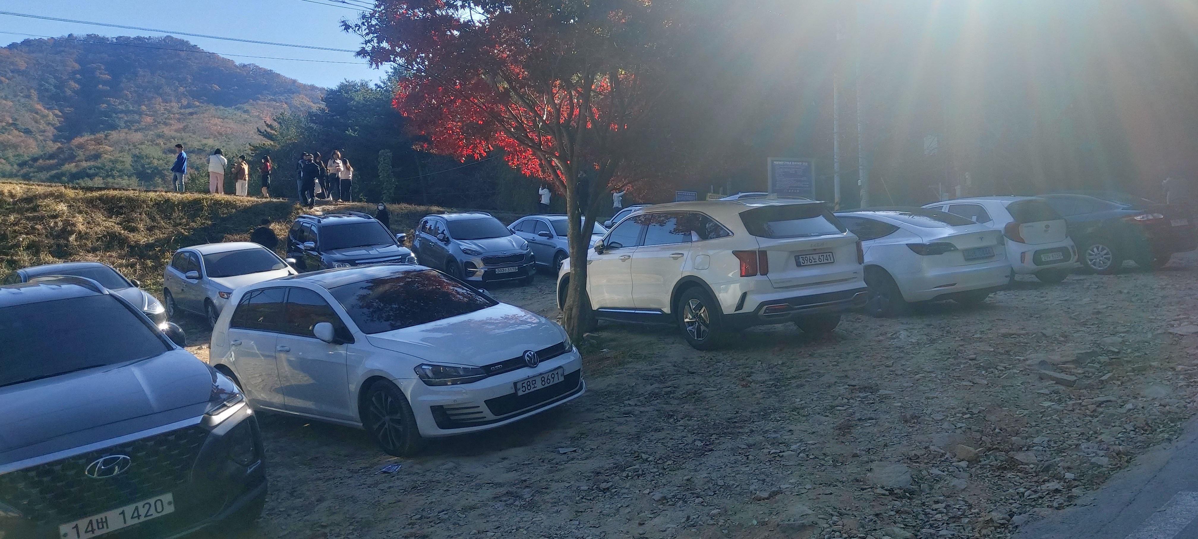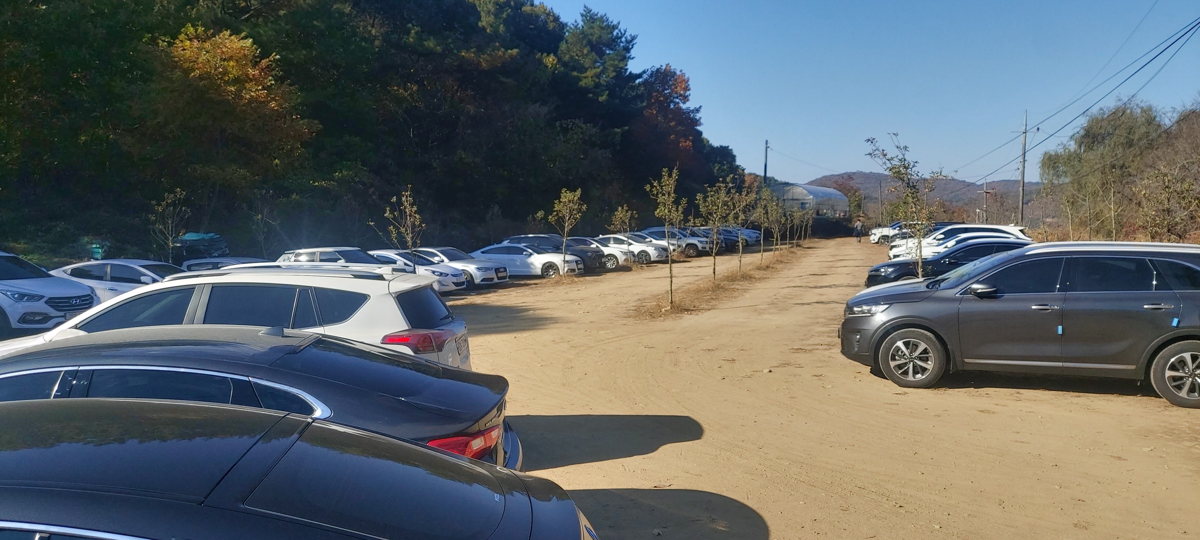 주말에 수많은 방문객들의 차량을