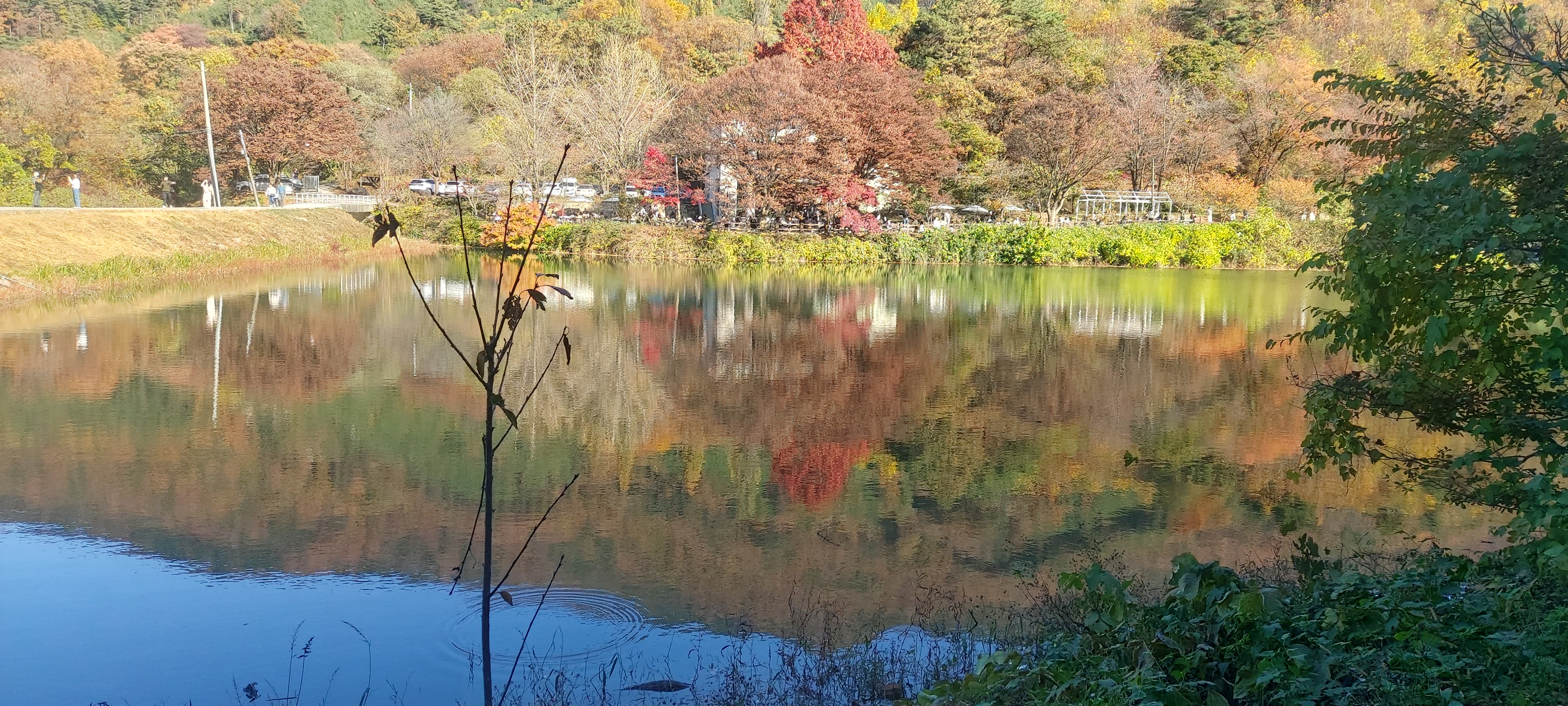저수지 풍경과 반영샷, 카페가 끝입니다